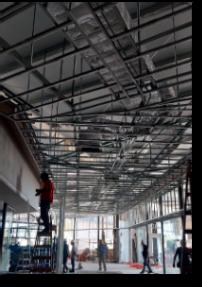 En PB, trabajamos en la tabiquería de nuevos sectores, en la estructura de cielorraso, colocación de unidades Cassette de acondicionamiento térmico.
