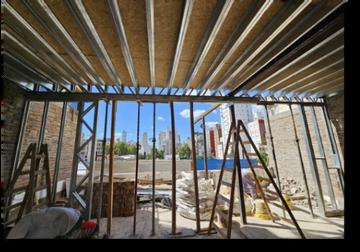 Iniciamos con las tareas de panelizado del steel sobre la terraza de P4. Al finalizar estas tareas, realizamos contrapiso de hormigón liviano y carpeta.