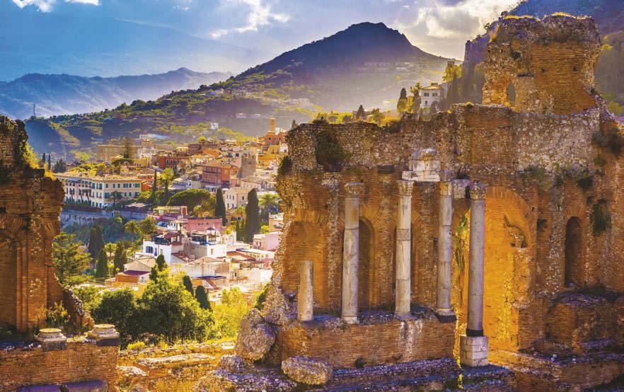 Sotto: Taormina con il suo Teatro Greco