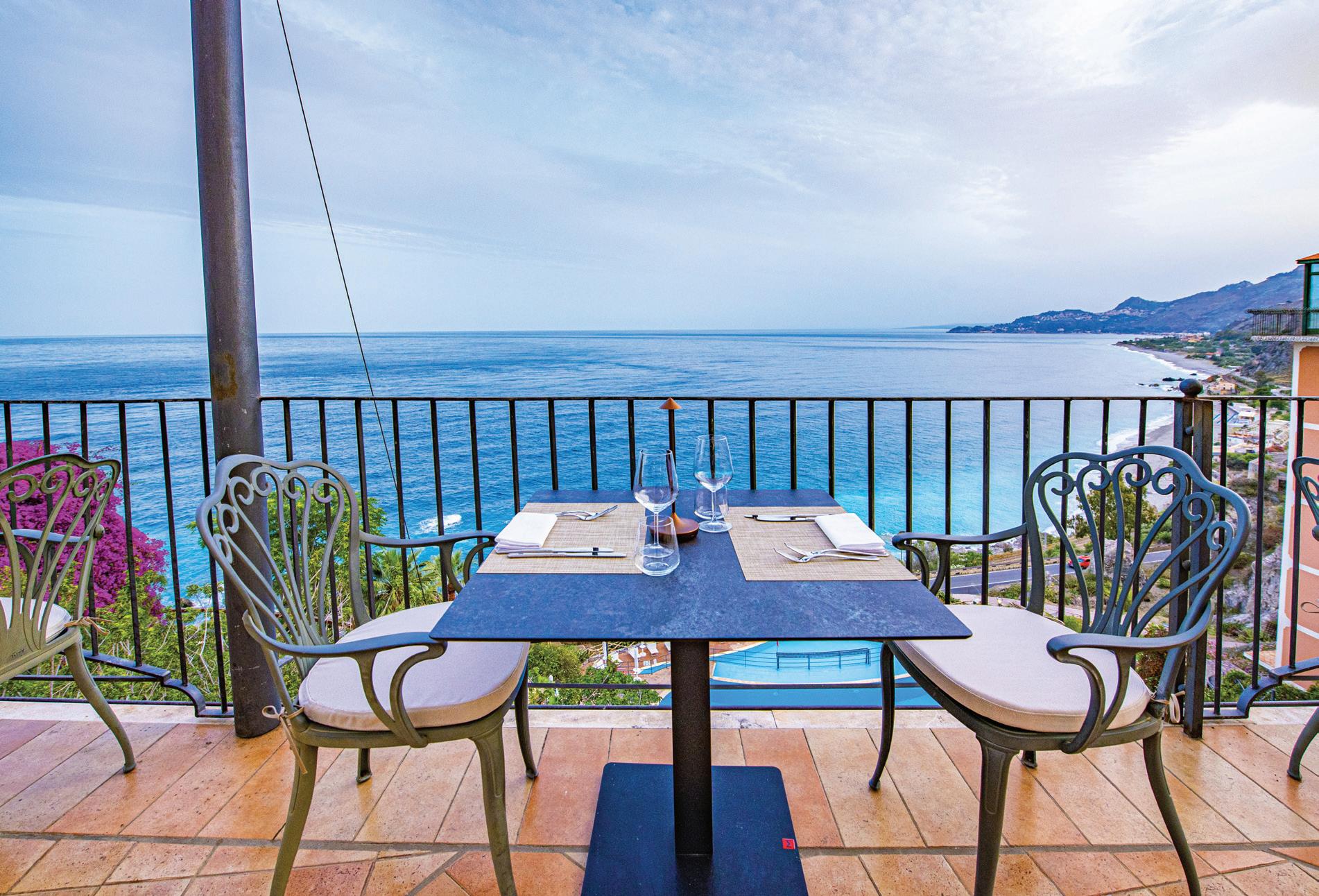 ELEGANZA CON VISTA Bellezza e fascino dell’isola sono condivisi dalla nuova struttura firmata CDSHotels, il Baia Taormina, con la sua posizione panoramica su una scogliera da cui domina la baia da cui prende il nome. L’hotel si presenta ristrutturato e perfettamente immerso nel mood siciliano, grazie ai suoi rivestimenti in pietra locale e alle rifiniture in cotto artigianale. Un rigoglioso giardino, archi e pergolati incorniciano. la struttura che può contare su 120 camere, tutte dotate di balcone o ter-