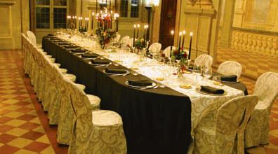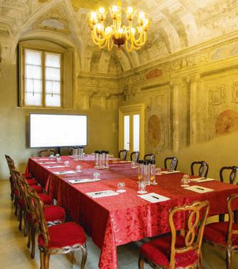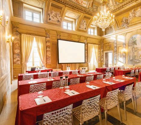 che degustazioni. Il secondo livello, invece, è costituito dal piano terra, provvisto di terrazza con affaccio al giardino e, infine, ecco il piano nobile. Raggiungibile dallo scalone principale, il piano nobile contempla il Salone delle Feste e altre sei sale per una capacità complessiva di trecento persone di cui 120 nella principale. Tutte affrescate da autori di notorietà internazionale, le sale presentano diverse superfici – comprese tra i 35 e i settanta metri quadrati –, sono impreziosite da affreschi e da mobili d’epoca e si rivelano ideali per ospitare eleganti serate di gala. A Palazzo Verità Poeta, grazie alle numerose ambientazioni, si possono organizzare eventi in ogni periodo dell’anno: durante la bella stagione è protagonista il giardino – ricco di alberi e di specie floreali – per ricevimenti all’aria aperta o per sorseggiare aperitivi discorrendo d’affari. Nella stagione più fresca, il Mice ha a disposizione tutti gli altri eleganti spazi indoor della location.