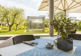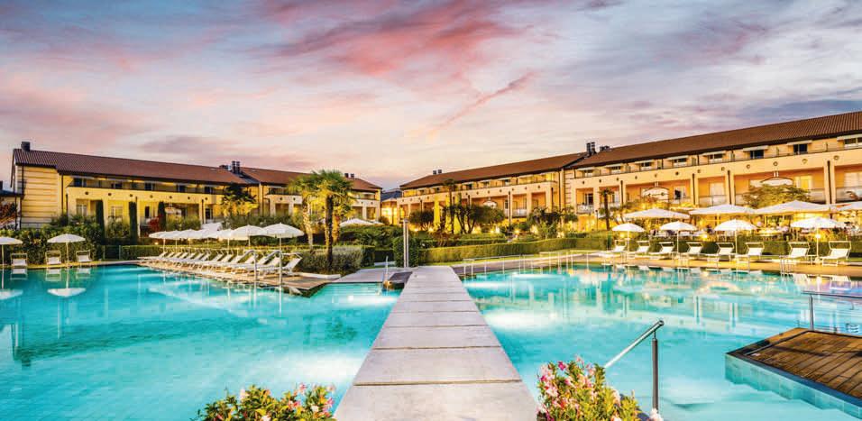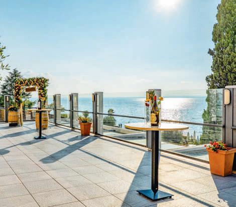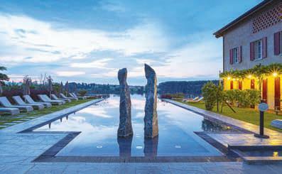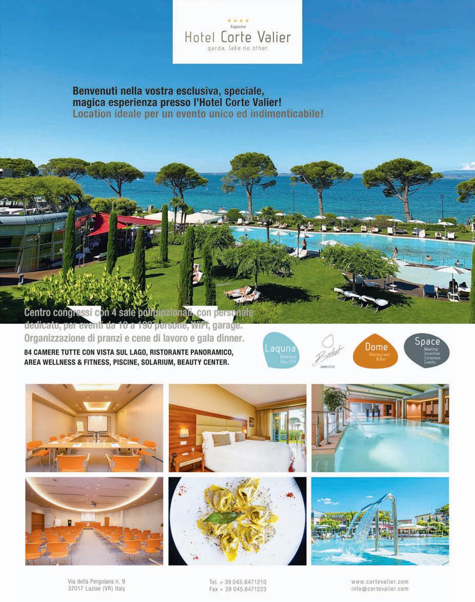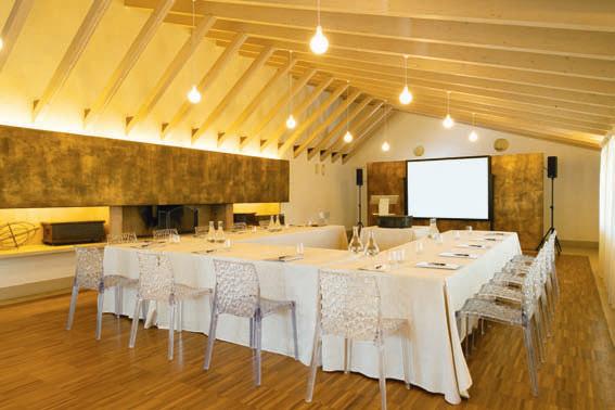 con camino, dipinti alle pareti e un magnifico tavolo ovale per una dozzina di persone, ideale per riunioni di board. Infine la sala Tuffetto, molto scenografica col suo affaccio sulla piscina e altri 25 posti. Un doveroso sguardo infine alla ristorazione: se ne occupa Ardea Purpurea (dal nome dall’airone rosso che abita l’oasi del lago) che provvede a menù ricercati serviti nella sala da pranzo sospesa sulle acque del laghetto, ma anche alla preparazione di coffee break, light lunch, aperitivi e serate di gala. A completare il tutto, oltre alle piscine, la spa con trattamenti, la palestra, la possibilità di abbinare esperienze dalle escursioni in bici ai tour in barca, dalle cooking class alla degustazione dei celebri vini della zona come Valpolicella, Lugana e Bardolino o di rilassarsi semplicemente nel fornitissimo lounge bar con un drink tra le mani ad ammirare il tramonto.