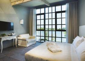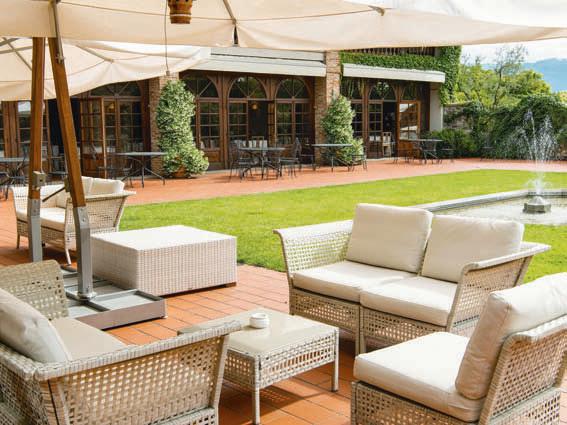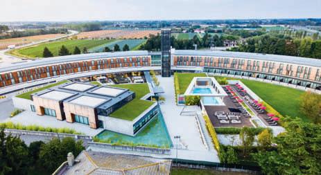 Chi viaggia molto, soprattutto per lavoro, lo sa: arrivare a destinazione ed essere accolti dalla quiete e da un contesto gratificante rende più disponibili e predisposti alla concentrazione. Le Ali del Frassino è proprio uno di questi luoghi, nella natura, affacciato sul lago del Frassino, oasi Sic e patrimonio Unesco per i siti archeologici palafitticoli, a breve distanza da Peschiera. Lontano dal caos dunque ma facile da raggiungere (la zona è servitissima da aeroporti e autostrade), il resort mette a disposizione 98 camere, disposte in cinque antichi edifici rurali, ristrutturati con un occhio di riguardo non solo allo stile (arredi d’epoca, travi a vista, preziosi parquet) ma anche alla sostenibilità. È questo un tema che caratterizza il resort a partire dai tetti in sedum (un coibentante termico naturale) di alcuni degli edifici alla colonnina di ricarica elettrica, dal vigneto biologico ai pannelli fotovoltaici, fino agli alberi e ai fiori piantati per favorire la biodiversità: un’attenzione che è valsa al resort il riconoscimen-