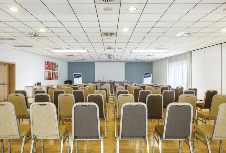 CENTER MODERNO E FUNZIONALE 1800 MQ COMPLESSIVI DISPOSTO SU UN UNICO PIANO INGRESSO SEPARATO COLLEGATO ALL’HOTEL DA UN CORRIDOIO PANORAMICO 10 SALE MODULABILI DOTATE DI LUCE NATURALE PARCHEGGIO DI OLTRE 500 AUTO