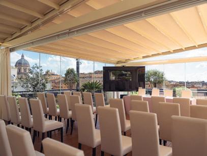 «La nostra terrazza al centro di Roma, spazio outdoor polivalente, è un punto di forza unico. Può essere allestita su misura e personalizzata. La sua versatilità la rende perfetta per ospitare showroom, presentazioni di prodotti, o semplicemente per stimolare il networking fra i partecipanti d un evento: è il giusto compromesso per godere del clima romano in completa privacy con affacci eleganti e un design raffinato. L’atmosfera rilassata e professionale che si respira da noi spinge molte aziende a scegliere la nostra sala principale per meeting in una location creativa e originale e unire il business a un’e-