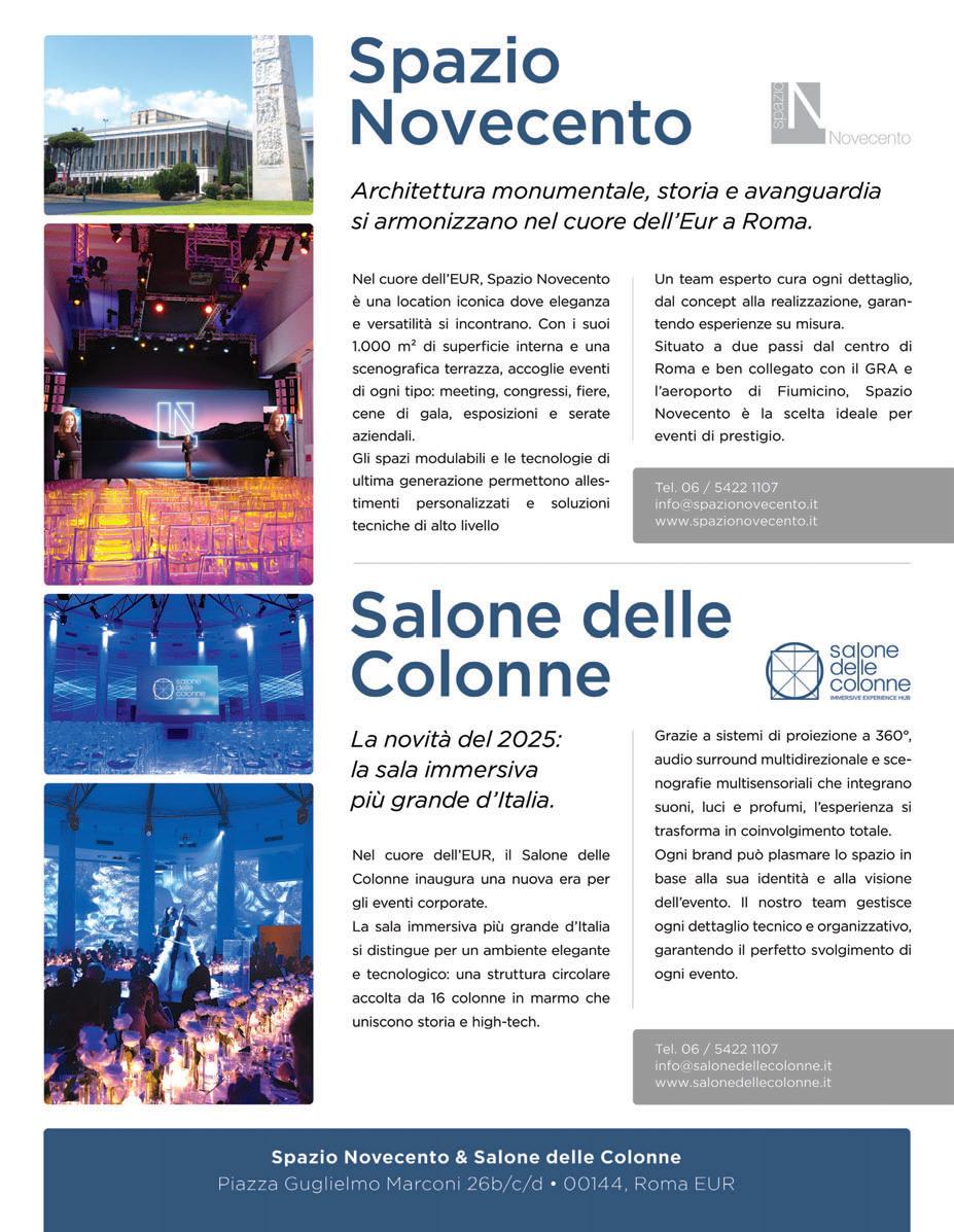 che della Capitale e un team commerciale dedicato che supporta l’organizzazione di eventi di ogni tipo, privati e aziendali. Tra le strutture particolarmente rilevante per la meeting industry, c’è l’Hotel Shangri La Roma, punto di riferimento dell’Eur, il quartiere degli affari capitolino, con il nuovo Omnia Convention Center al quale presto si aggiungerà un’ulteriore area che ospiterà nuove camere e spazi outdoor con piscina, ristorante, bar, candidati ad arricchire gli ambienti ideali per eventi, di lavoro e conviviali, di grande atmosfera.