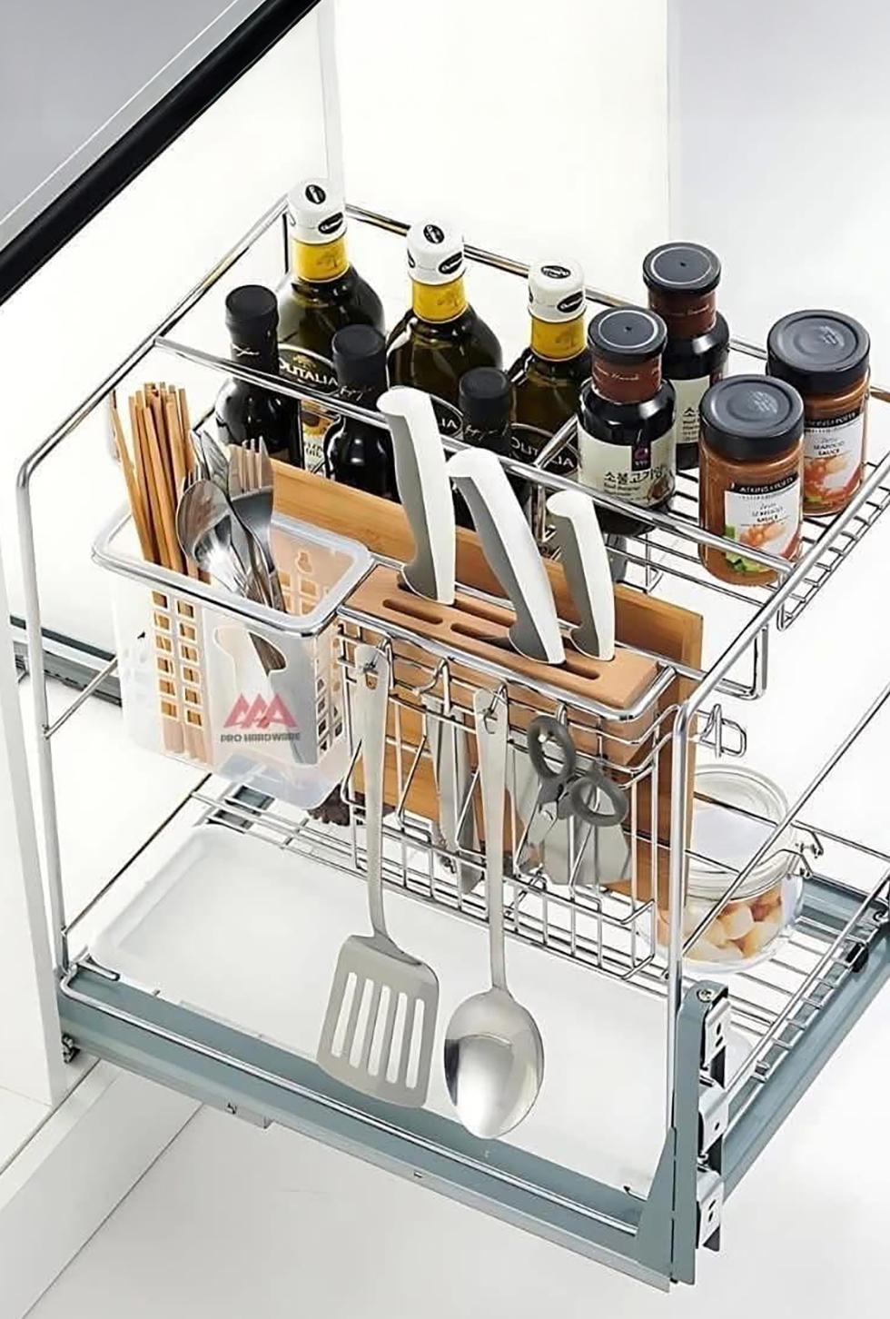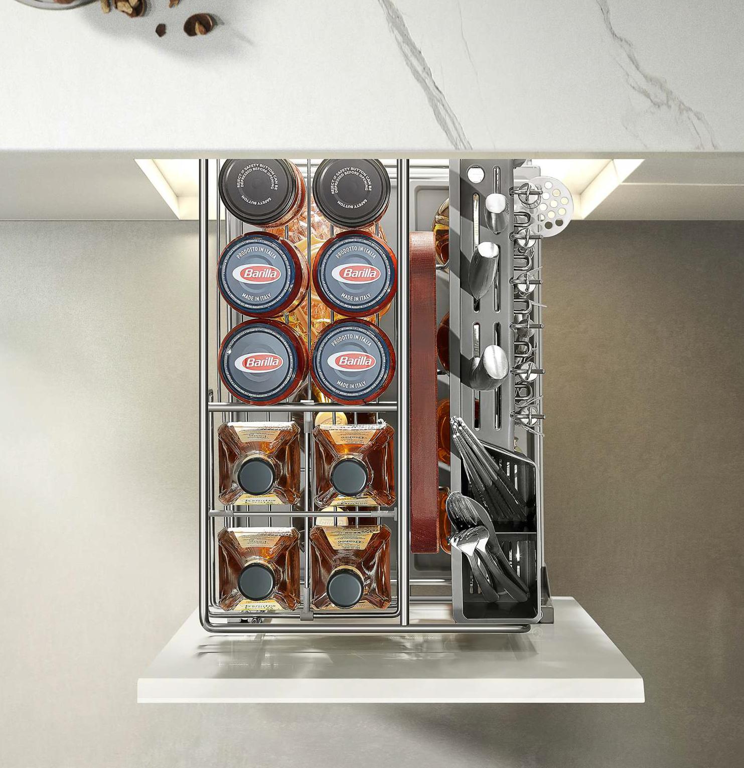 Porta utensillos de cocina. Extracción frontal. Rieles de extracción total.
