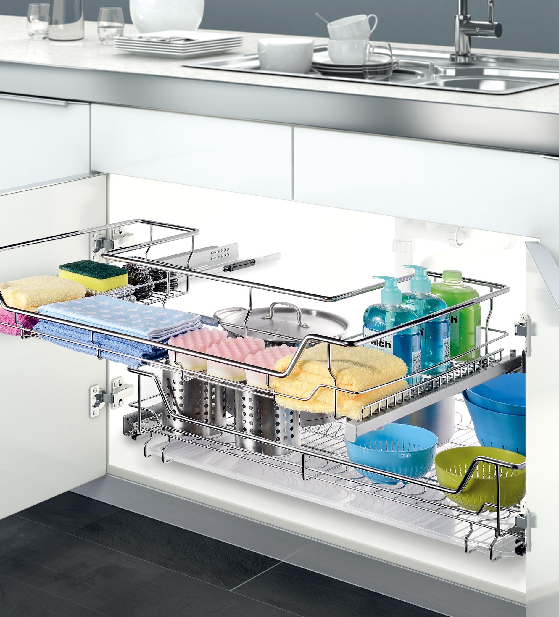 Canasta para bajo fregadero. Sistema de deslizamiento de cierre suave de 45 cm de profundidad.