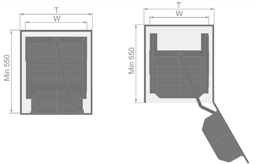 Profundidad mínima de 550 mm