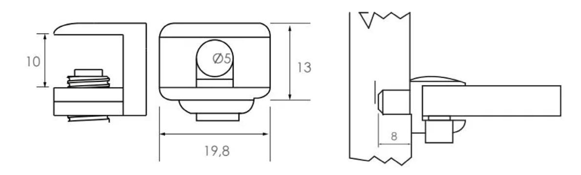 UNISOPI0008 MOB SOPORTE T06 REPISA TRANSP. 20 X 6Ø mm