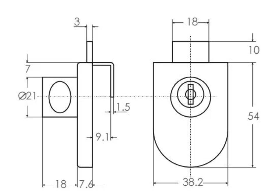 1 cerradura, 1 platina recibidora, 2 tornillos.