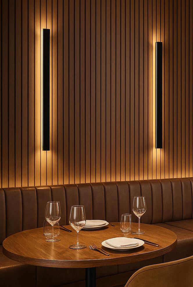 Luz cálida indirecta, alta eficiencia y diseño duradero en negro mate.
