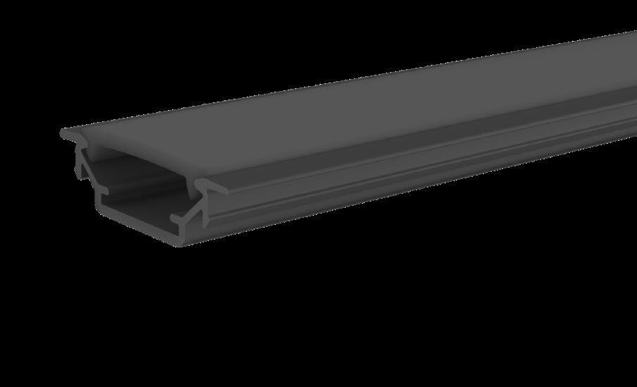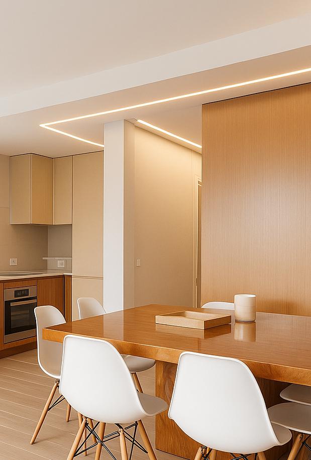 Perfil empotrable para cinta LED con luz uniforme y estilo minimalista.