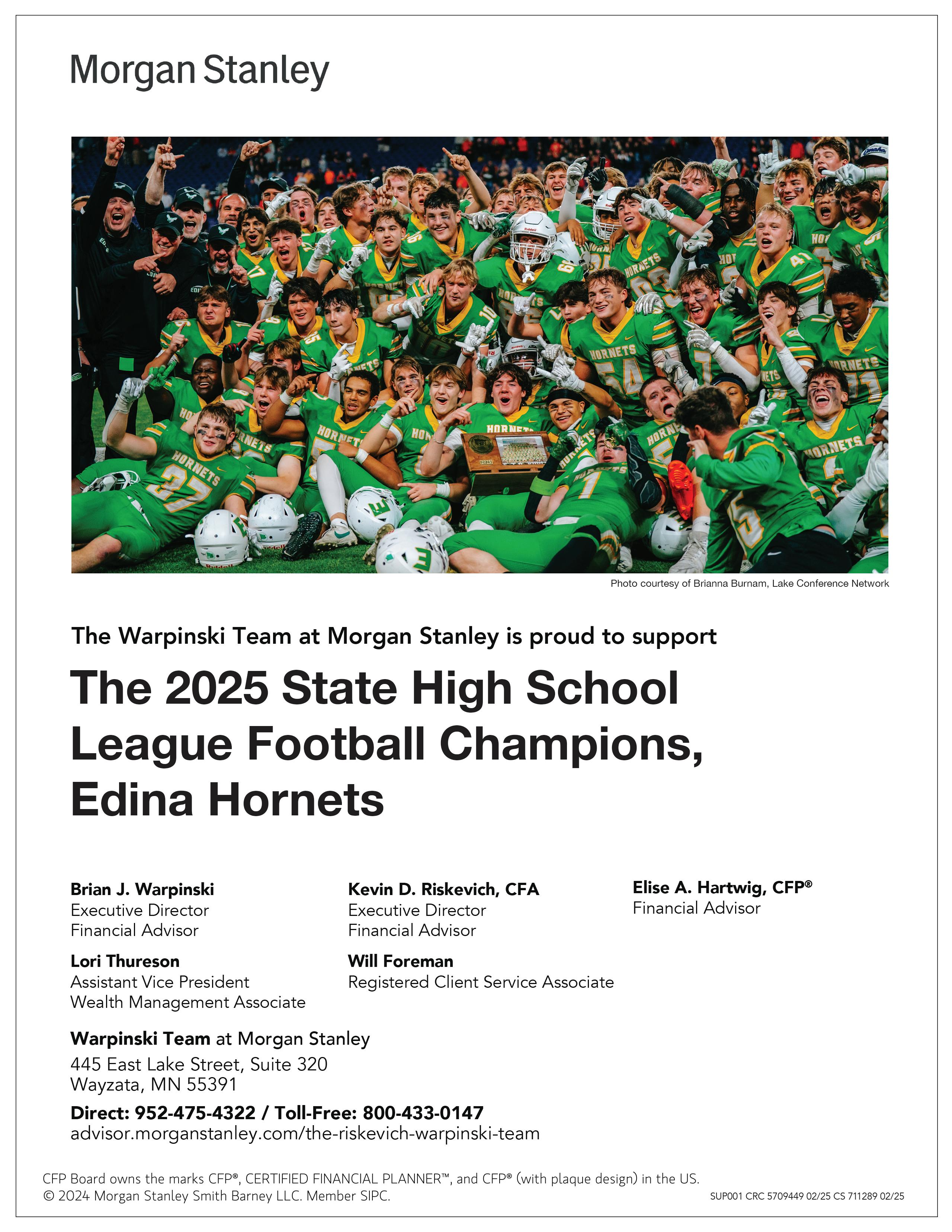 As we look forward to another year filled with promise and opportunity, the continued support of our community remains essential. As we look back on a successful fall we also look forward to another year filled with promise and opportunity that is only made possible with the support of our community. Together, we ensure that every Edina athlete enjoys the chances and experiences they rightfully deserve. Thank you for your unwavering investment in our students and for helping them soar—whether on icy rinks, green fields, hardwood courts, or in life’s greater journey.