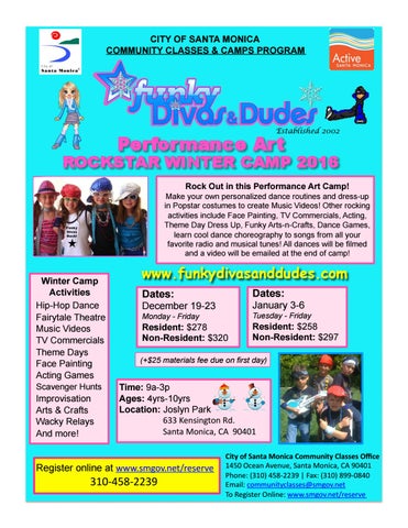 City of Santa Monica Community Classes OďŹƒce 1450 Ocean Avenue, Santa Monica, CA 90401 Phone: (310) 458-2239 | Fax: (310) 899-0840 Email: communityclasses@smgov.net To Register Online: www.smgov.net/reserve