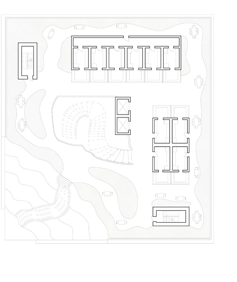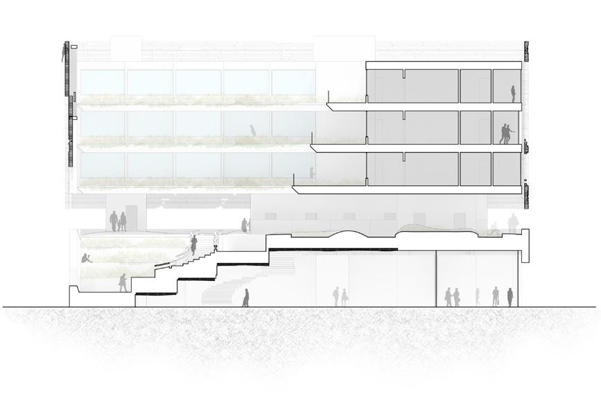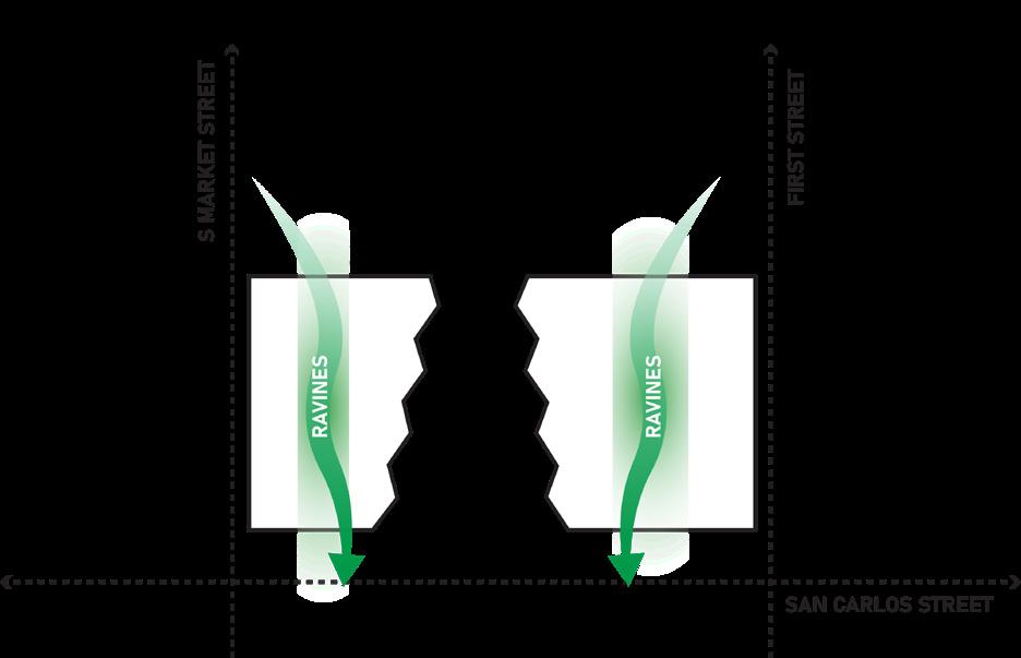 The integration of vegetation and openair amenities not only enhances aesthetic appeal but also promotes a healthier and more engaging work environment. By blurring the lines between indoor and outdoor spaces, this project encourages movement, collaboration, and a deeper connection with the surroundings to establish a unqiue office experience within Silicon Valley.