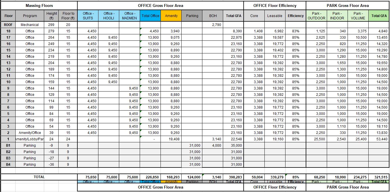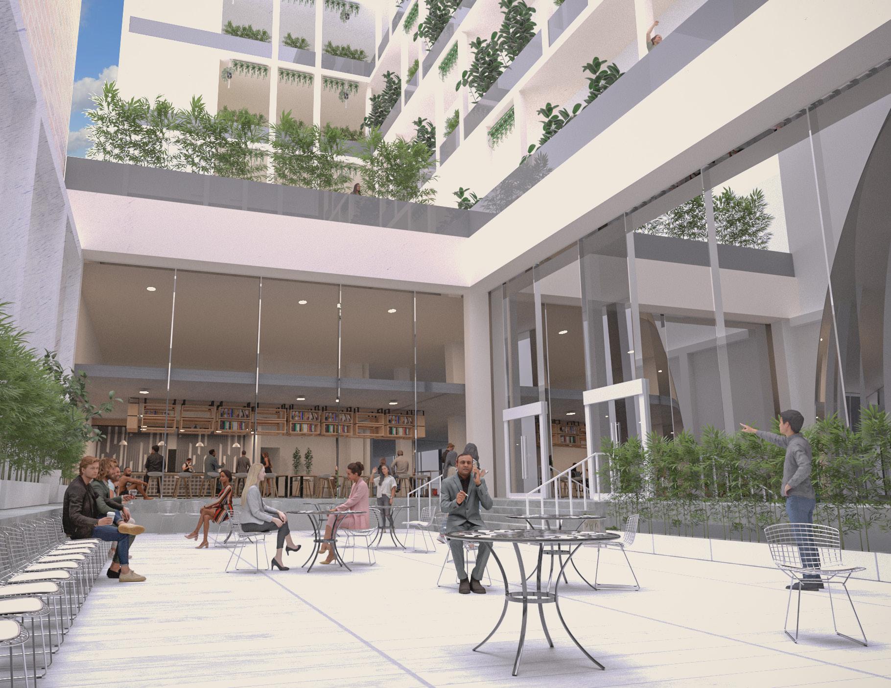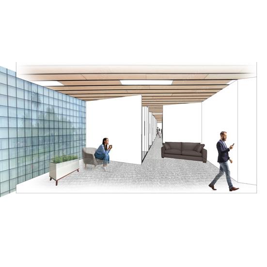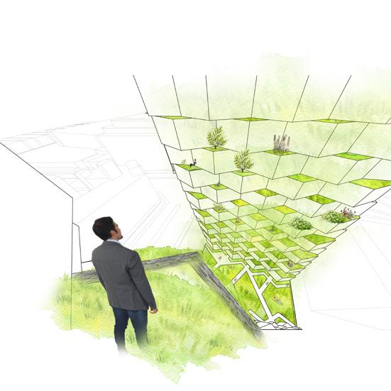 Inspired thoughts about the idea of the park as the “inbetween” space. These spaces focused on the vibrancy created through the vegetation and greenery. These spaces are meant to inspire activity and interaction between the office spaces. Moreover, they highlighted the importance of the experience navigating through the “in-between.”