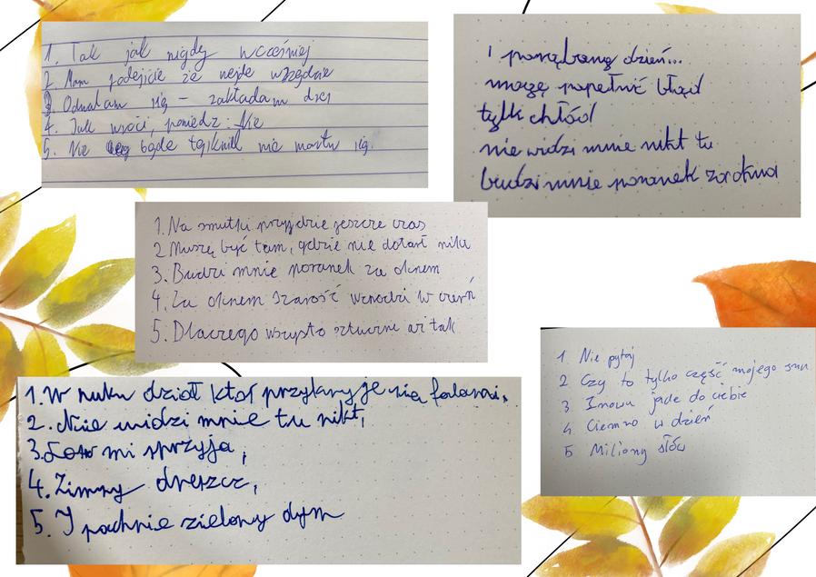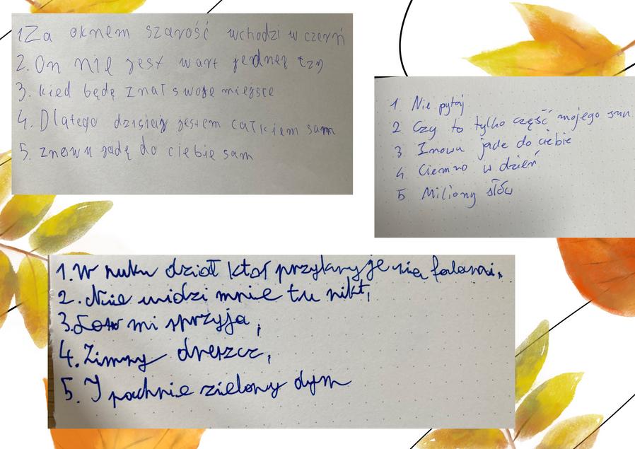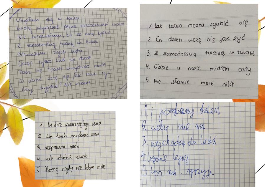 4. Kolejne wersy muszą pochodzić każdorazowo z innego tekstu.