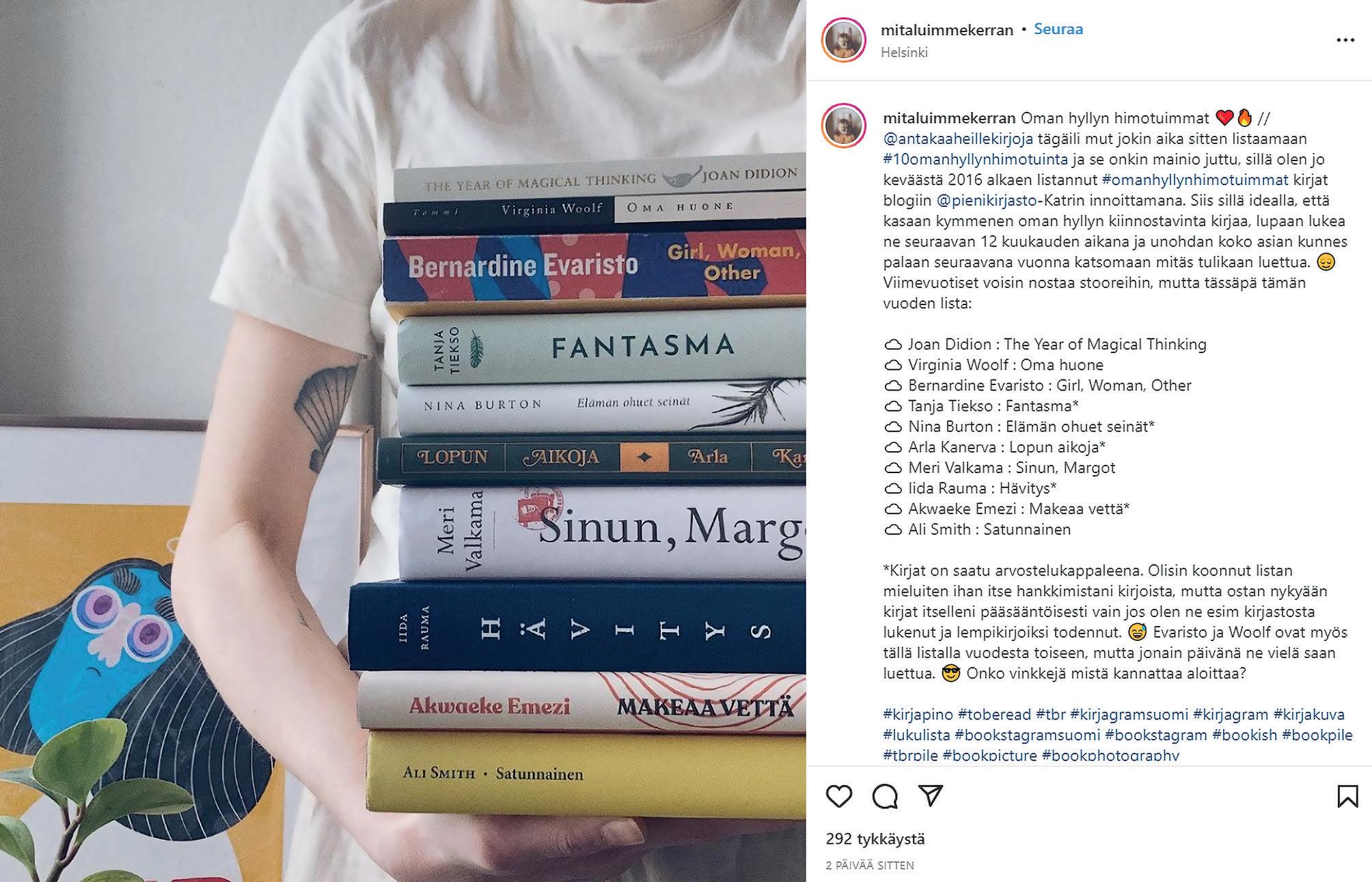 Kirjallisuus saa näkyvyyttä myös sosiaalisen median kanavista, kuten Instagramista.