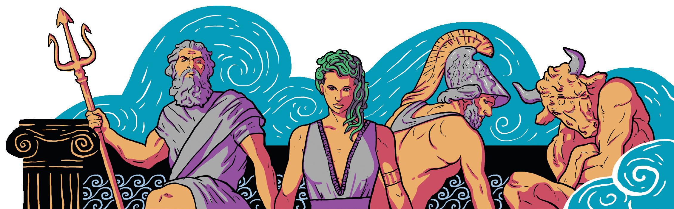 Esim. Kerberos, Kolkhiin lohikäärme, Khimaira, Sfinksi, seireenit, Medusa ja muut gorgot, Kirke ja Medeia