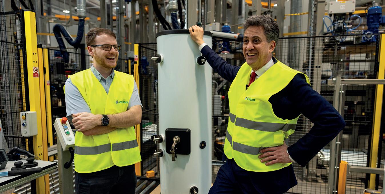 Energy Secretary Ed Miliband has visited Vaillant’s new manufacturing plant to see it produce its high-recovery hot water cylinders.