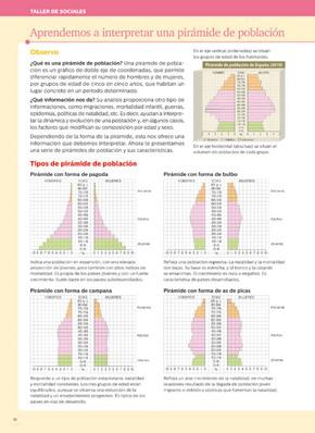 Taller de sociales. Cada unidad cuenta con un taller de Sociales en el que se potencian las habilidades emprendedoras, de autogestión y de aprendizaje autónomo mediante la promoción de la creatividad, la aplicación práctica de los conocimientos reflejados en los ejemplos de resolución de determinados talleres y el pensamiento crítico. En esta sección se aprenderán y aplicarán técnicas para comentar una noticia, analizar y comentar una obra de arte, etc., entre otras.