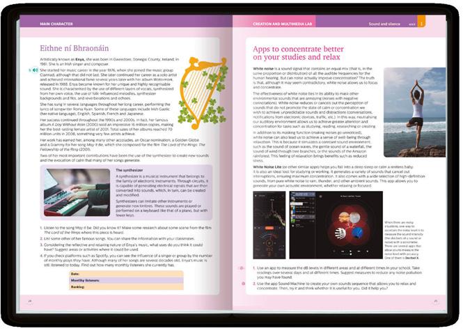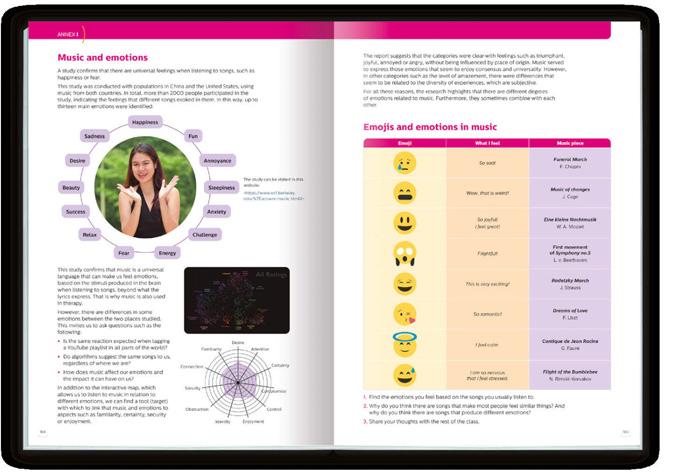 At the end of each book, there are three annexes that expand and enrich the content to explore music from new perspectives. Each one focuses on a key aspect that contributes to a better understanding of how music is experienced, felt and built in different contexts.