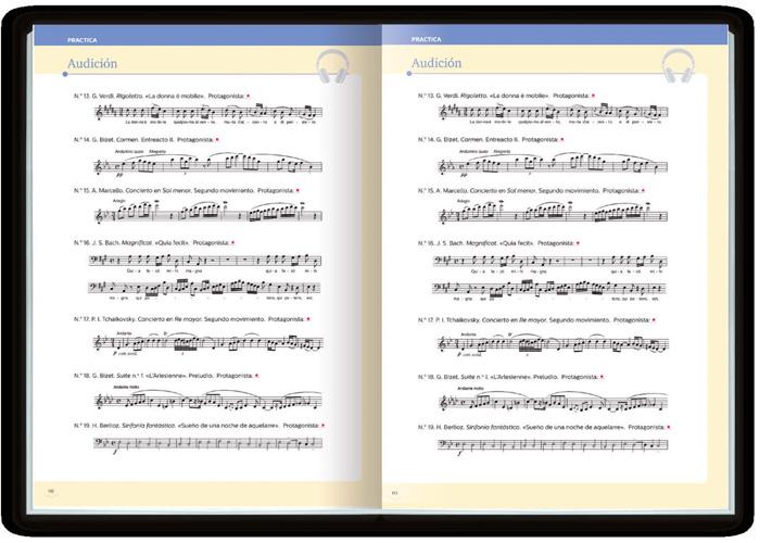 Several diagrams, tables, illustrations and musical examples have been included to understand and assimilate the information in a simpler and more enjoyable way. Reinforcement, listening and performance activities are very useful to consolidate the knowledge acquired in a more practical way. Complementary elements and interesting facts are included in the margins. Listening activities are identified with the symbol and the number corresponding to their order of appearance in the book and availability on the website.