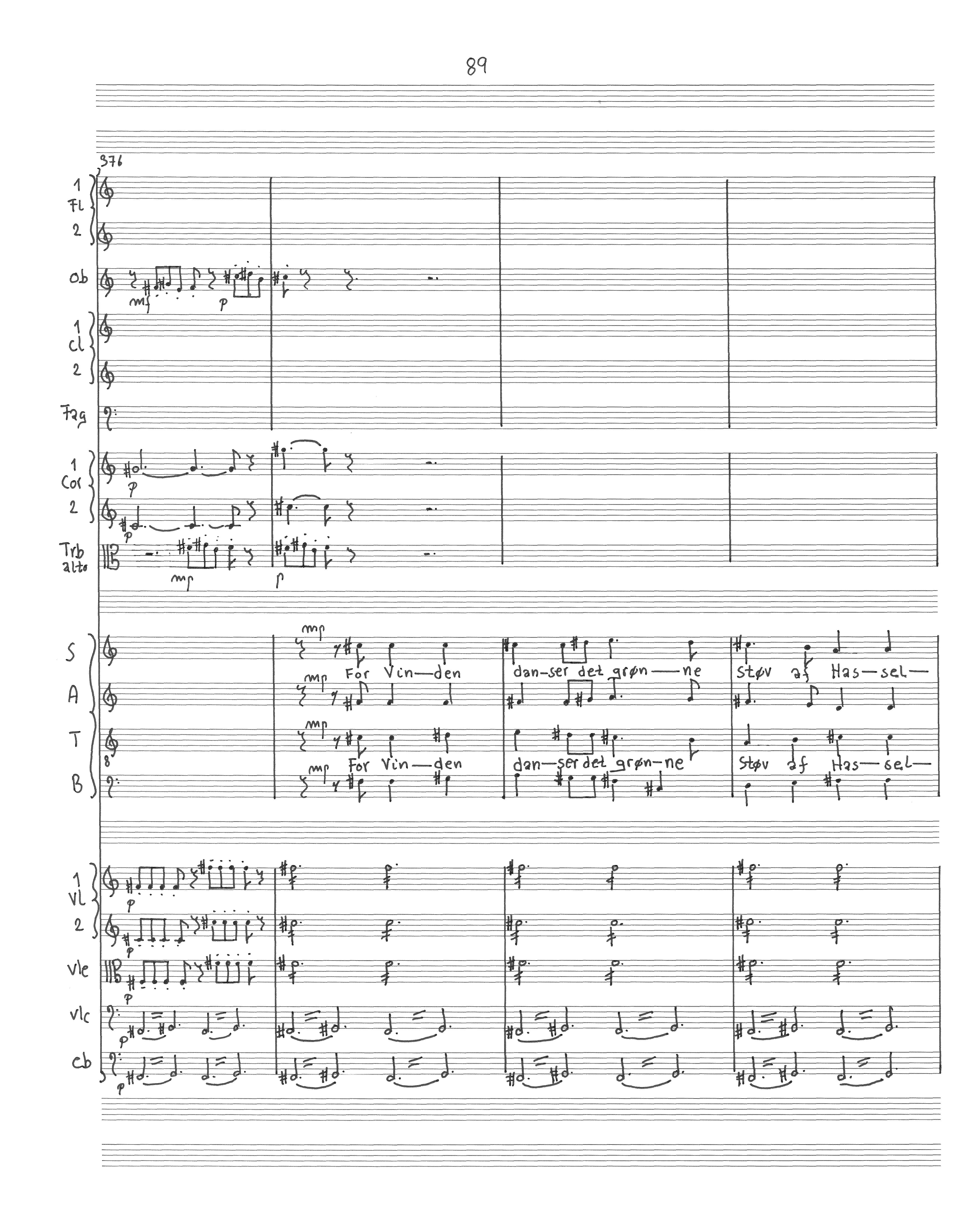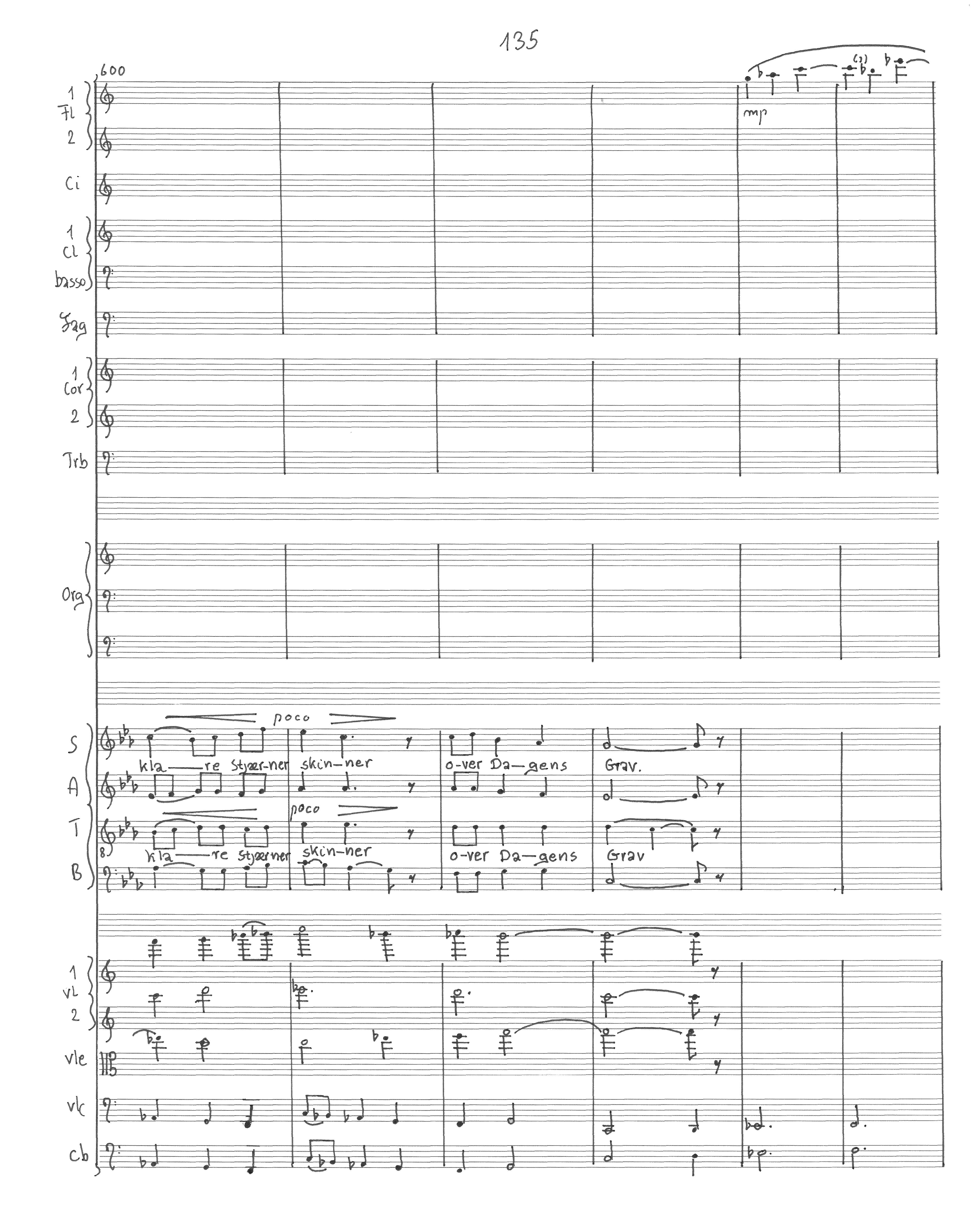 Hør i Havet Bølgen bruse Mindre høit, med mindre Magt; Hør i Lunden Stormen suse, Dæmpet, meer og meere svagt —