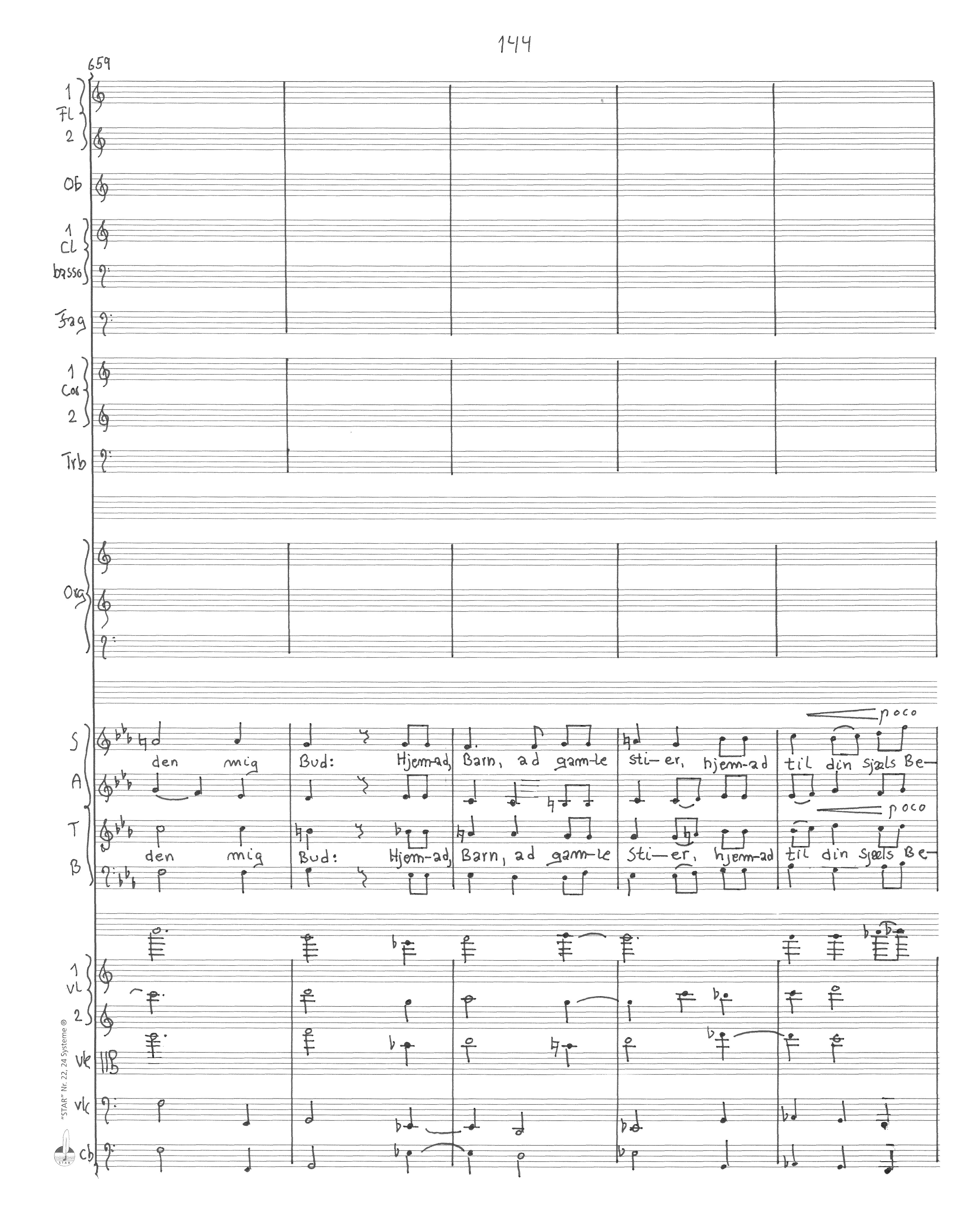 Naar jeg taler, naar jeg tier, naar jeg beder, naar jeg bier, sender den mig Bud: Hjemad, Barn, ad gamle Stier, hjemad til din Sjæls Befrier, hjemad til din Gud.