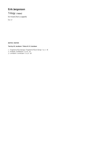 NOTES / NOTER Text by J.K. Jacobsen / Tekst af J. K. Jacobsen 1 - Fragment af Gurresange / Fragment of Gurre Songs // p. 2 - 18 2 - Arabesk / Arabesque // p. 20 - 30 3 - Landskab / Landscape // p. 32 - 36