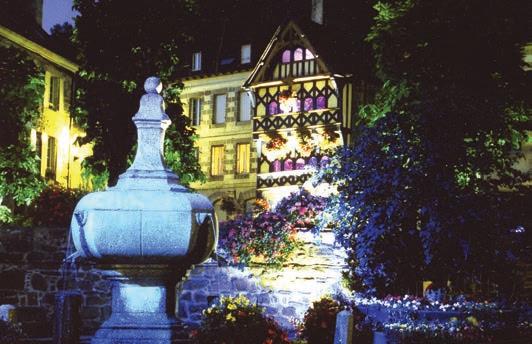 fontaine du XVIIIe siècle, et la maison surnommée la « Tour Eiffel ». Cette maison de la Tour Eiffel ou du Roscoat, datant du XVe-XVIe siècle, est une maison à pans de bois classée, abritant aujourd’hui des salles d’exposition. Elle se trouve sur une des places triangulaires de la Ville la place le Trocquer.