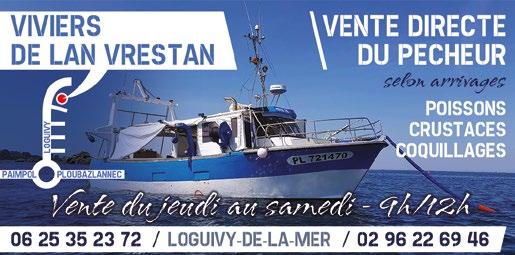 VENTE DIRECTE D’HUÎTRES LE GUEN CHAUMARD 8 Min er Goas 06 78 41 60 30 COQUILLAGES DU SILLON ZA du Costy 02 96 16 12 38 LOGUIVY-DE-LA-MER VENTE DIRECTE DE POISSONS ET CRUSTACÉS ARMEMENT LE FUR Viviers de Lan Vrestan 02 96 22 69 46