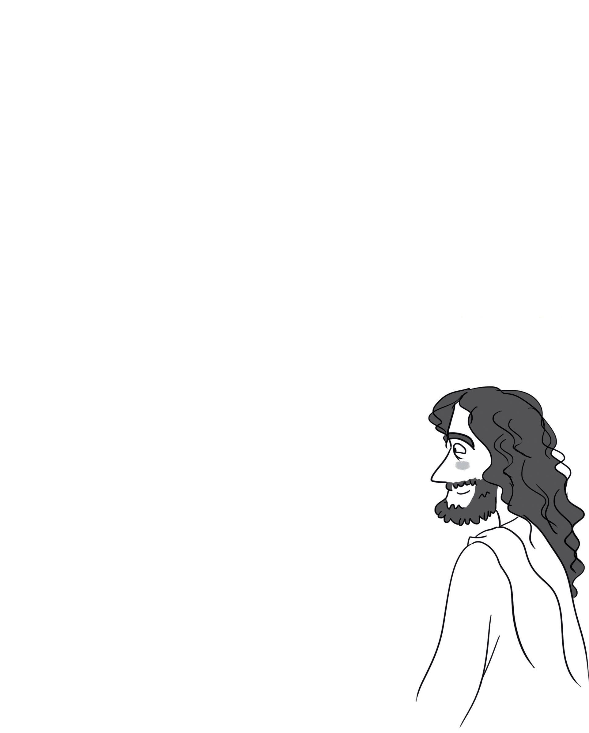 Jésus fait non de la tête. Maman ! Il a fait non de la tête tout le temps, puis il a soupiré longtemps. Je l’ai observé réfléchir, il a regardé ses vêtements et il m’a dit :