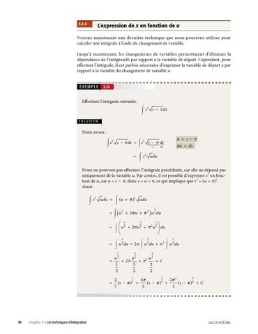 Nous ne pouvons pas effectuer l’intégrale précédente, car elle ne dépend pas uniquement de la variable u. Par contre, il est possible d’exprimer s 2 en fonction de u, car u = s - π, donc s = u + π, ce qui implique que s 2 = (u + π)2. Ainsi :