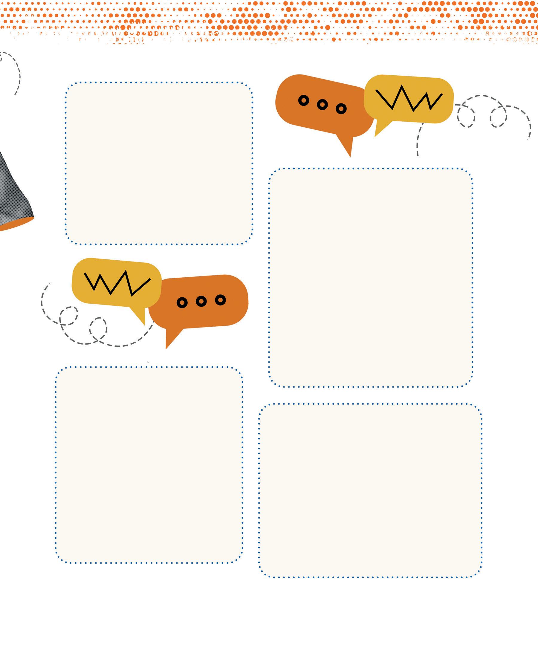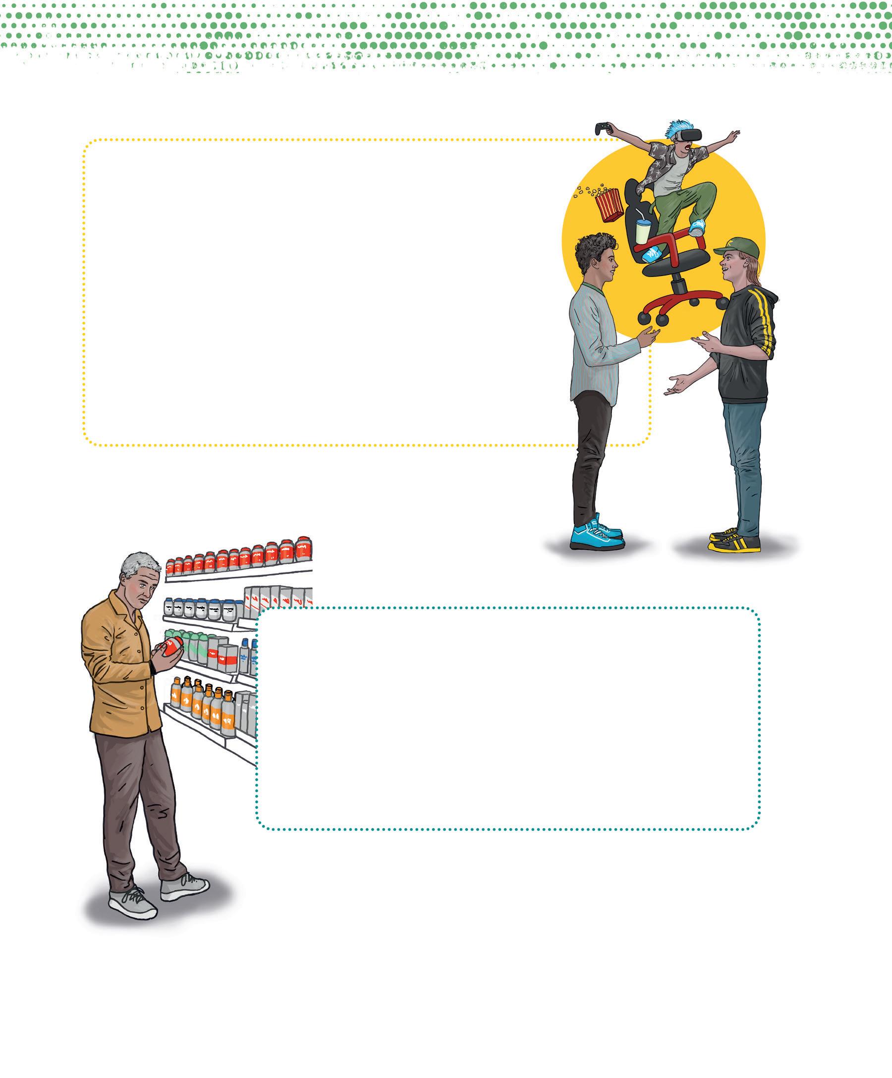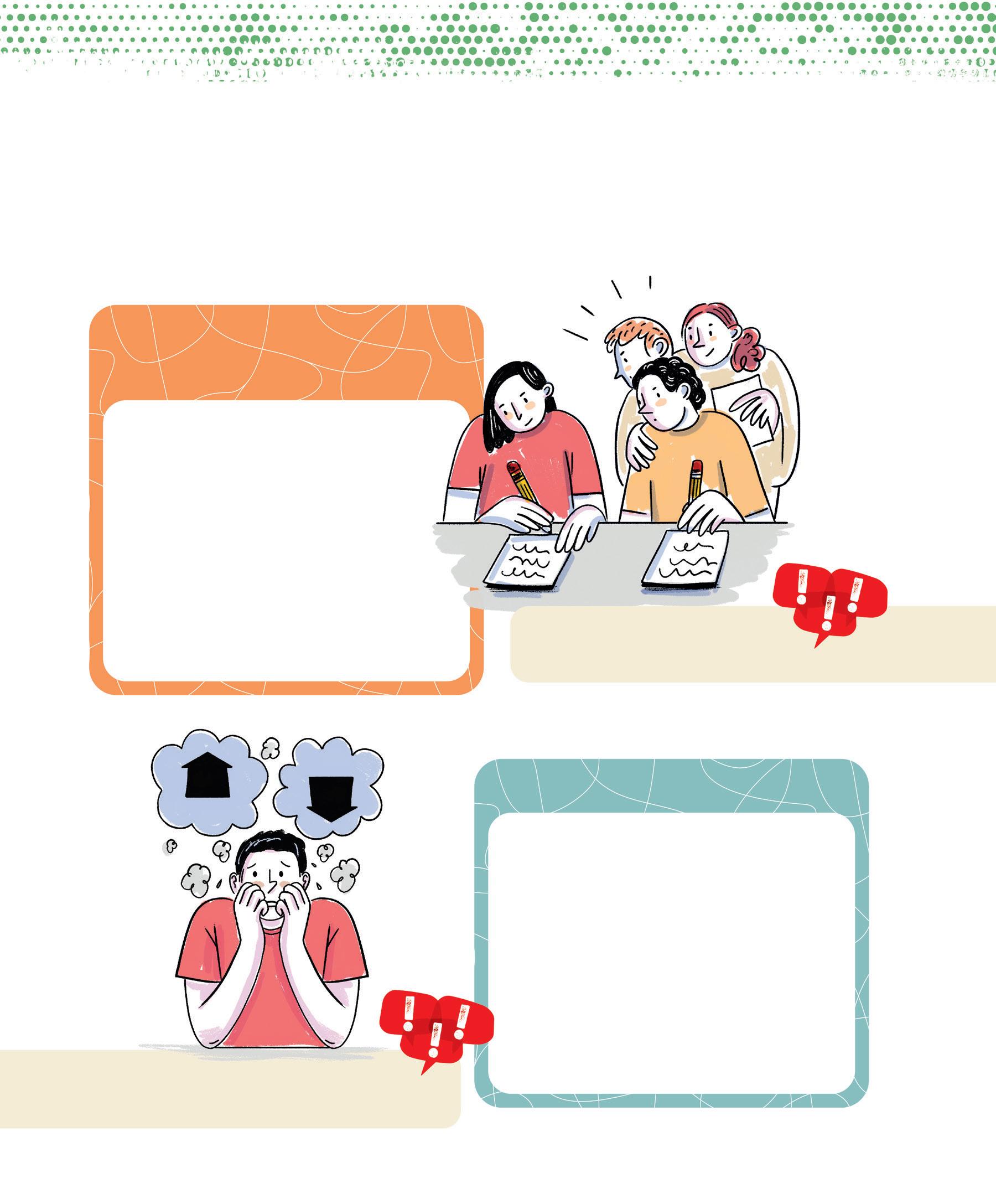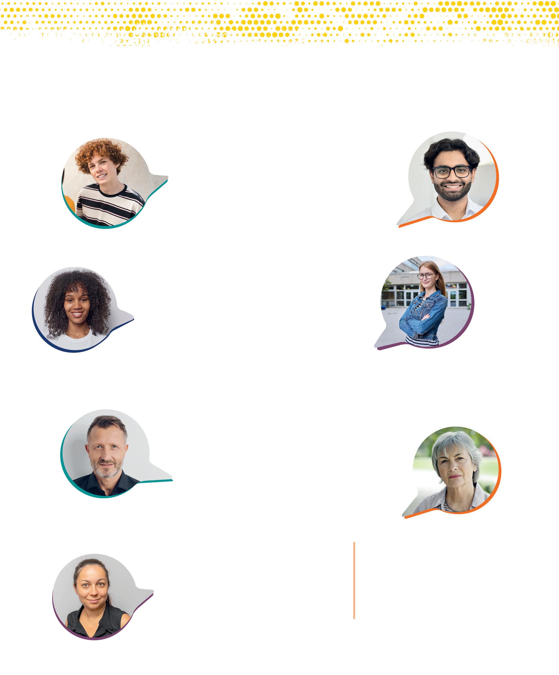 iStock.com / p. 164: young people in a cafeteria © Hispanolistic, 1411322814. Shutterstock.com / p. 7: adolescent with headphones © Ollyy, 86790025. p. 156: group of young people © Jose Calcina, 2436846845. p. 157: people in a meeting © klyaksun, 2183470883. p. 159: young people with backpacks © chronicler, 773688853; teacher in front of class © Monkey Business Images, 1332875000. p. 161: Gilbert © Inside Creative House, 2505339787; Kabir © insta_photos, 2192136373; Eve-Lyne © Wayhome Studio, 2408565635; Maude © VH-studio, 2408897357; Sylvain © stockfour, 1016723167; Véronique © Anelo, 2197757639; Gisèle © Image Point Fr, 174171395. p. 162: group of people, back view © oneinchpunch, 490906510. p. 163: donut, nuggets and fries © IDEA ROUTE, 2478397213. p. 165: salad © lilik ferri yanto, 2512542933. p. 166: tray with meal © Africa Studio, 1139822657. p. 169: shrimp, peanuts, eggs © New Africa, 1322462069. p. 178: funnel © SPF, 2301838831; person balancing with red and green balloons © kostasgr, 1961569669. p. 187: diverse silhouettes © melitas, 1857402163. p. 188: hands in conversation © Roman Samborskyi, 2357375783. p. 189: orange and yellow speech bubbles © Roman Samborskyi, 2357375783. p. 190: pointing hands © Roman Samborskyi, 2285057785. p. 191: pictograms (top to bottom): © chocolat-10, 2440624205; © chocolat-10, 2418376737; © mi-vector, 2383077379; © chocolat-10, 2418376737; © Rvector, 1790019863. p. 192: pictograms (top to bottom): © chocolat-10, 2440624205; © Rvector, 1790019863; © chocolat-10, 2440624205; © Fourleaflover, 2133348541; © Fourleaflover, 2079740932. p. 193: pictograms (top to bottom): © Uswa KDT, 1928826860; © Fourleaflover, 2079740932; © smx12, 2474395423; © Kida, 2000657552; © Realstockvector, 2456066677. p. 198: group selfie of teenagers © Jose Calsina, 2506806499.