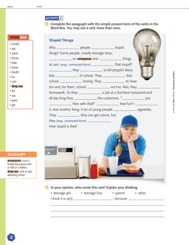 ACTIVITY 2 Complete the paragraph with the simple present form of the verbs in the Word Box. You may use a verb more than once.