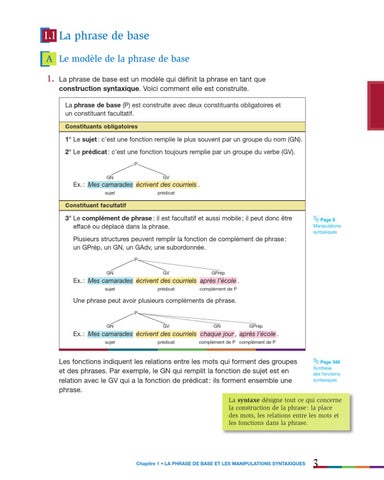Chapitre 1 • LA PHRASE DE BASE ET LES MANIPULATIONS SYNTAXIQUES