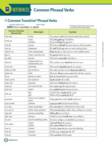 REFERENCES Common Phrasal Verbs A Common Transitive* Phrasal Verbs transitive phrasal verb example