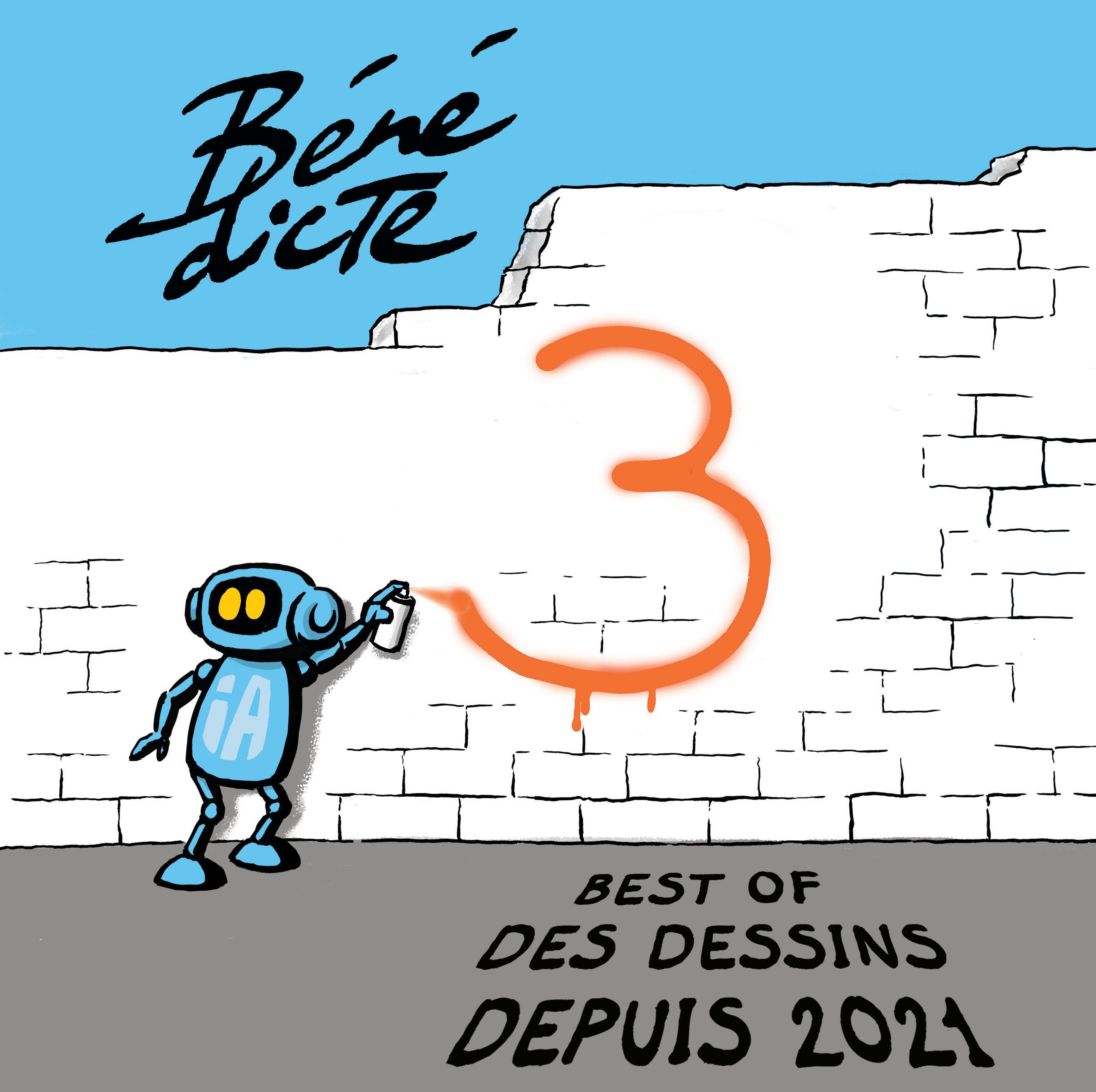 Pour écrire ce petit texte, je me suis replongé dans les productions de Bénédicte. Et ce qui me frappe d’abord, c’est l’étendue de sa palette. Qui est bien loin de se résumer au « gros nez », sa marque de fabrique originale. Dans la rédaction, on a presque tous son dessin préféré de Bénédicte, « scotché » au bas de l’écran de son ordinateur. Le mien ? Je vous dirai juste qu’il s’intéresse à l’intelligence artificielle à laquelle il faudra toujours préférer la bêtise naturelle. Bénédicte s’attaque à tout, fait rire de tout, sans tabou, sans jamais vouloir blesser. Même quand elle croque le local, elle a le trait universel.