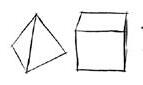 Les solides de Platon : le tétraèdre (pyramide), l’hexaèdre (cube), l’octaèdre, le dodécaèdre et l’icosaèdre.
