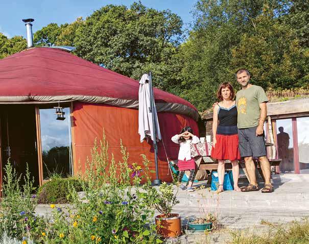 vers Brocéliande, il en est tombé en amour. C’est l’aspect esthétique et romantique qui l’a séduit, alors que Virginie a considéré l’aspect pratique, écologique, économique, nomade. La yourte leur permet d’être libres : simple, elle signifie peu de contraintes. La yourte se déplace, se revend, se bricole. Aujourd’hui, ils n’envisagent pas autre chose.