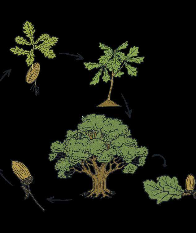 Au départ, il faut une petite graine recouverte d’une enveloppe protectrice, appelée « tégument aussi un certain nombre de conditions favorables, à commencer par une terre fertile, de la chaleur, de l’humidité et de la lumière. Lorsque tout cela est pré sent, ni trop ni pas assez, la graine germe : c’est la ger mination. Alors, une fine racine se développe dans le sol et une petite tige pointe vers le haut. Si tout va bien, cette petite tige deviendra un tronc… La crois sance d’un arbre se fait à la fois dans les airs et sous terre. Elle se prolonge tout au long de sa vie.