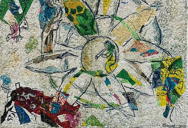 Arrivata al MAR l’opera “Le Grand Soleil” (1965-1967) di Marc Chagall, capolavoro assoluto del maestro russofrancese e protagonista della mostra “Chagall in mosaico. Dal progetto all’opera”, in programma dal 18 ottobre al 18 gennaio 2026. L’opera, realizzata insieme al mosaicista ravennate Lino Melano, viene esposta per la prima volta in Italia e torna visibile al pubblico dopo decenni. Rappresenta un unicum nella produzione dell’artista. (Le Grand Soleil, collezione privata, © Chagall®, by SIAE 2025. Photo: © Benoit Coignard)