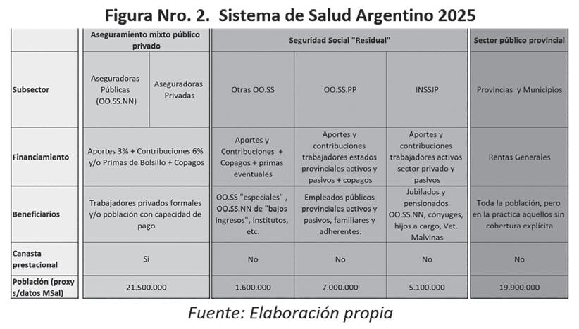 En números redondos, los afiliados de unas 300 obras sociales sindicales (o nacionales) constituyen el 35% de la población, los de las 24 obras sociales de empleados públicos provinciales el 15% y los beneficiarios del PAMI el 10%. El restante 40% de la población, que no cuenta con una cobertura formal, está constituido por usuarios de servicios públicos y afiliados autónomos de seguros privados. Este