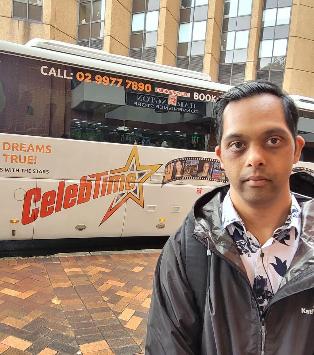 The bus stopped half way to Palm Beach and we took photos with Kirsty and she signed autographs on her postcard photo.
