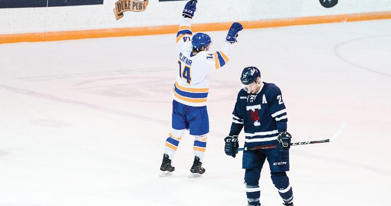 After losing to the University of Toronto (U of T) Varsity Blues in the first game of the playoff season, the Bold men’s hockey team bounced back on Feb. 18 with a 1-0 win, keeping their playoff alive as they forced a game three. TMU was overjoyed after a shot from Bold forward Kevin Gursoy ended up in the back of their opponent’s net. Forward Chris Playfair was seen cheering after the goal and TMU’s ultimate defeat of the Varsity Blues.