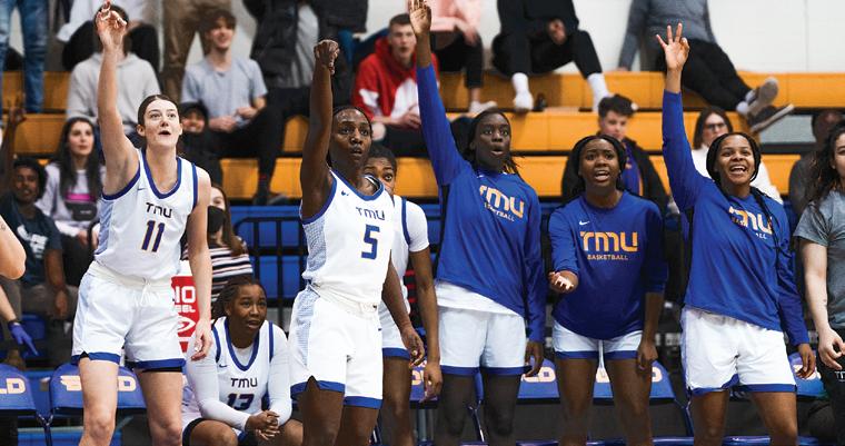“Give it up for the TMU Bold DancePak!” says the public address announcer at halftime of the November 5, 2023 women’s game. A lively song plays over the in-house speakers and for the first time in nearly three