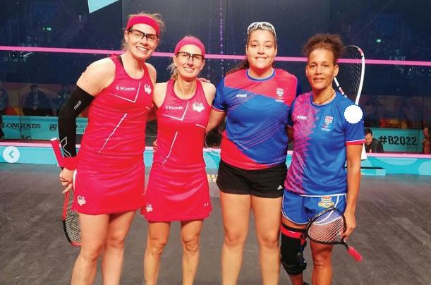 Second-year squash player Jade Pitcairn went to Birmingham to represent her home country, the Cayman Islands. She competed in the womens’ singles and both the womens’ and mixed doubles. (with Marlene West and Jake Kelly respectively)
