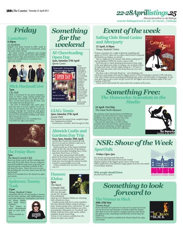 thecourieronline.co.uk/listings courier.listings@ncl.ac.uk | @Courier_Listings